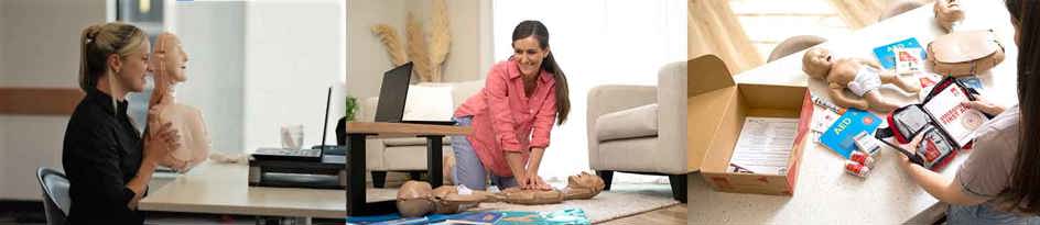 The class requires pre-learning and may be best suited to those who have done first aid before. It has the same physical requirements of a face to face class, including performing CPR on a manikin on the floor and all other practical exercises, which will be conducted on a mock casualty. Learn more about our virtual classroom courses here.