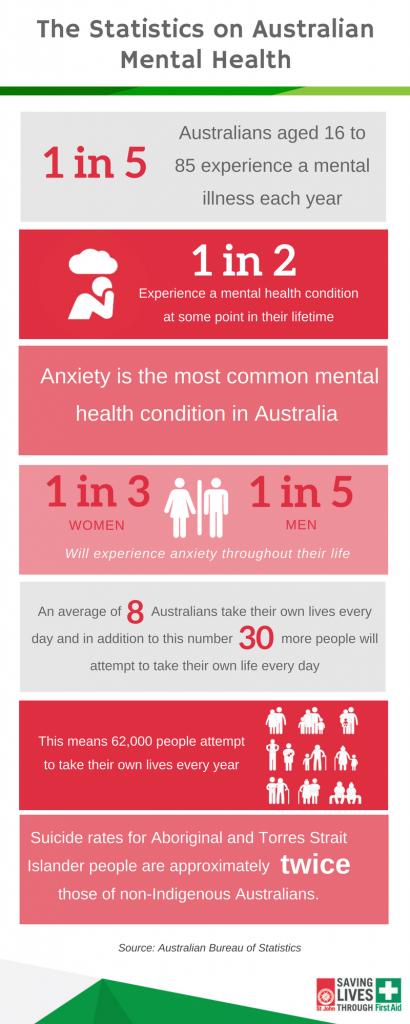 According to the Australian Bureau of Statistics 3.2 million Australians suffered from a mental disorder in a 12-month period. Recent research has exposed the harsh reality that with 1 in 5 Australians suffering from mood disorders such as depression and anxiety it’s more than likely that you know someone who is suffering and more commonly than not, they’re suffering in silence.