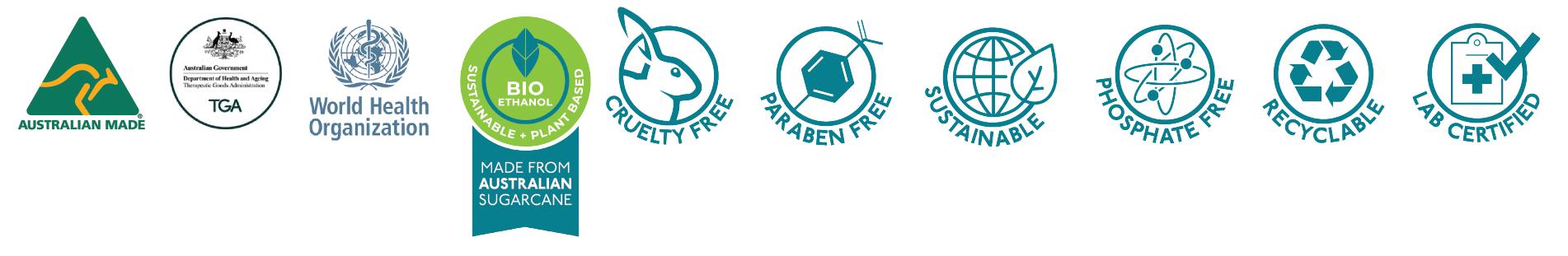 This medical grade sanitiser is an Australian made all in one solution, effective as both a surface spray and an antiseptic hand rub. The key ingredient is Bio-ethanol derived from Australian sugarcane. Bio-ethanol is sustainable and plant based, making it an environmentally friendly option compared to ethanol sourced from petrochemicals.